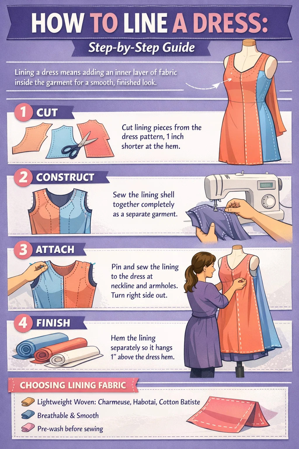 ستجد أدناه تفصيلاً خطوة بخطوة لكل مرحلة، وإرشادات حول اختيار القماش المنسوج المناسب للبطانة، ونصائح يستخدمها الخياطون المحترفون للحصول على نتائج نظيفة في كل مرة.