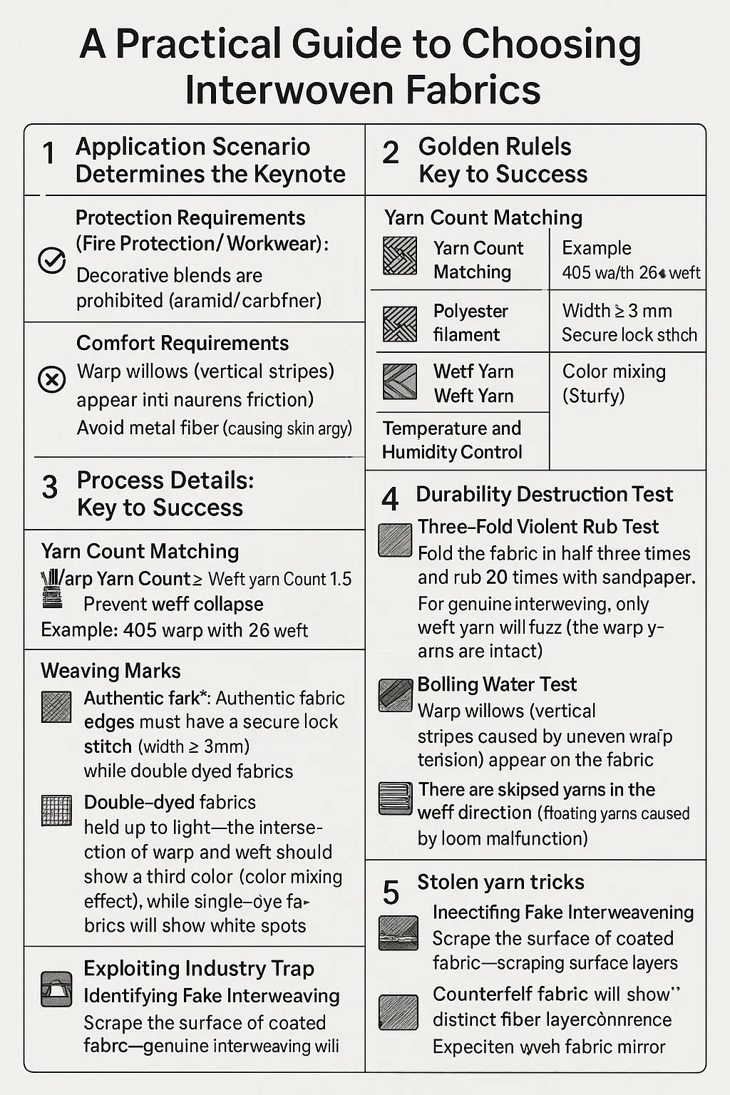 متطلبات الراحة (الملابس الداخلية/المفروشات): يجب أن تكون خيوط اللحمة من مواد طبيعية (القطن/الحرير طويل التيلة). تجنب الألياف المعدنية (التي تسبب حساسية الجلد بسبب الاحتكاك).