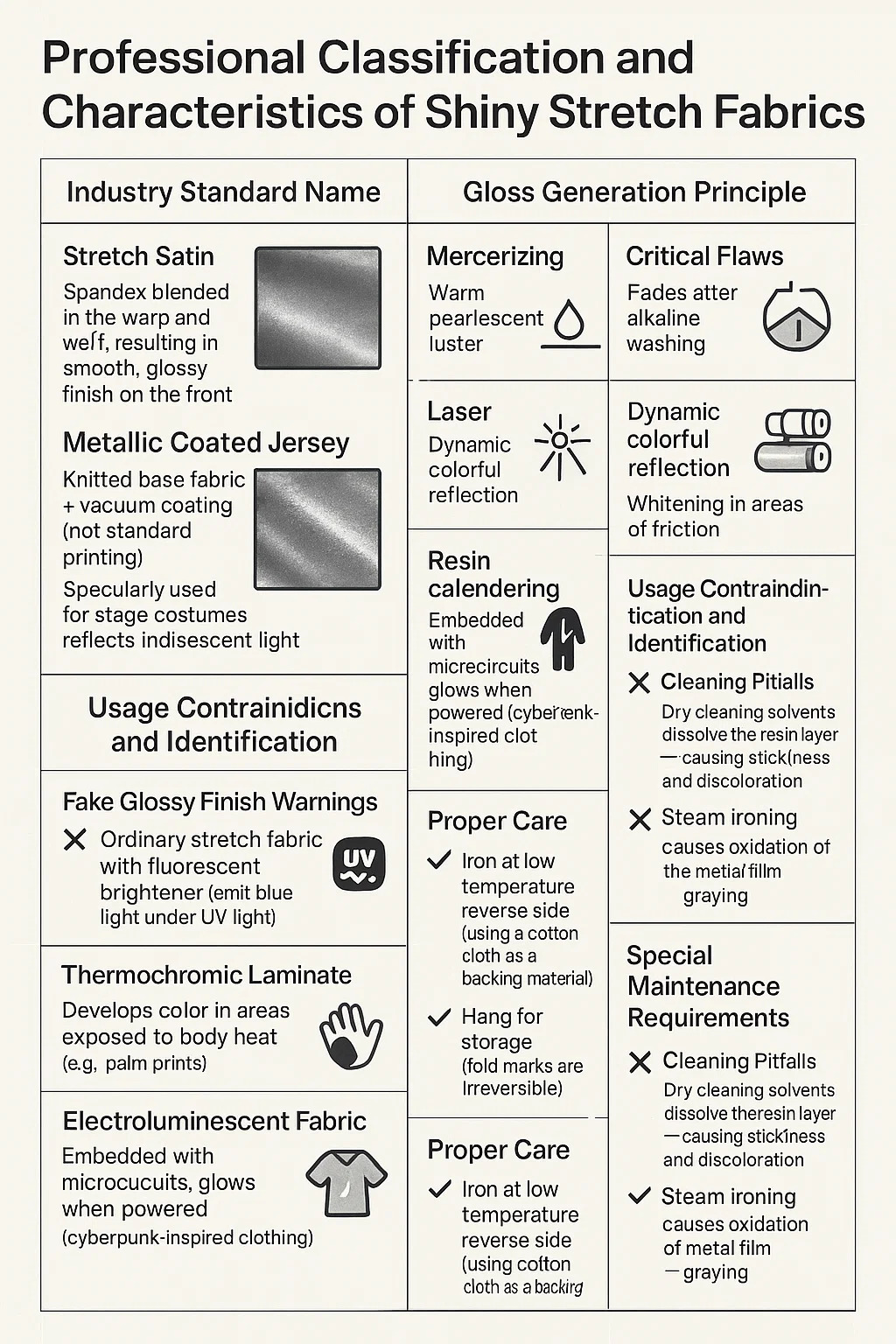 التصنيف المهني وخصائص اللامع أقمشة مطاطة
