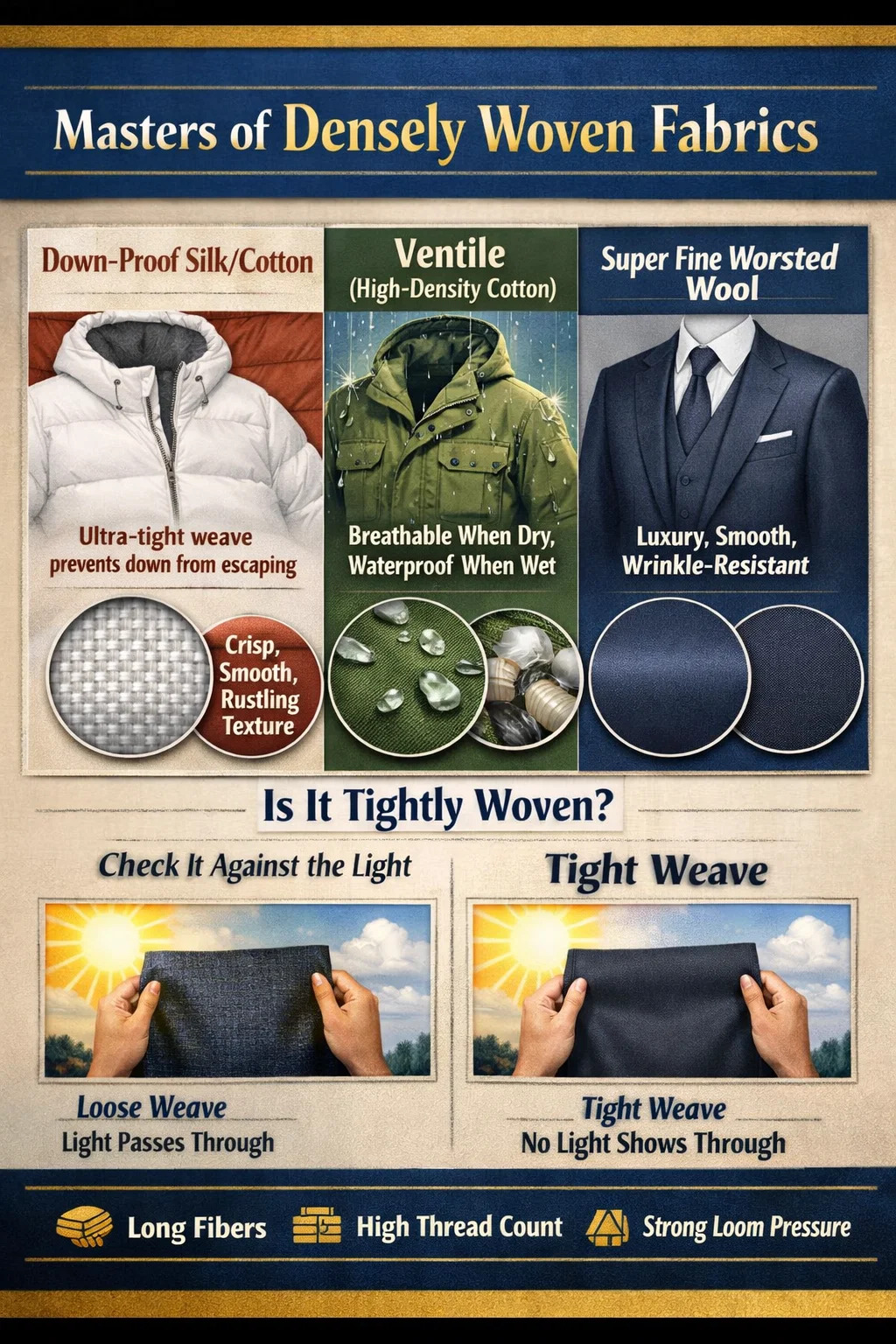 عندما يتعلق الأمر بكثافة العالم القماش المنسوج ، لا يوجد بطل واحد مطلق، حيث أن تعريف "كثيف" يعتمد على ما إذا كان مخصصًا للعزل المائي أو الرياح أو النعومة المطلقة.